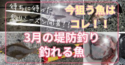 3月の堤防釣りで釣れる魚とおすすめの釣り方を紹介します。3月は産卵後で釣果が戻り始めるメバル、アイナメ、カレイ、バチ抜け本格化でシーバス(スズキ)が、乗っ込みではクロダイ(チヌ)が狙い目です。ほかアジ、アオリイカなども釣り場次第で狙えます。